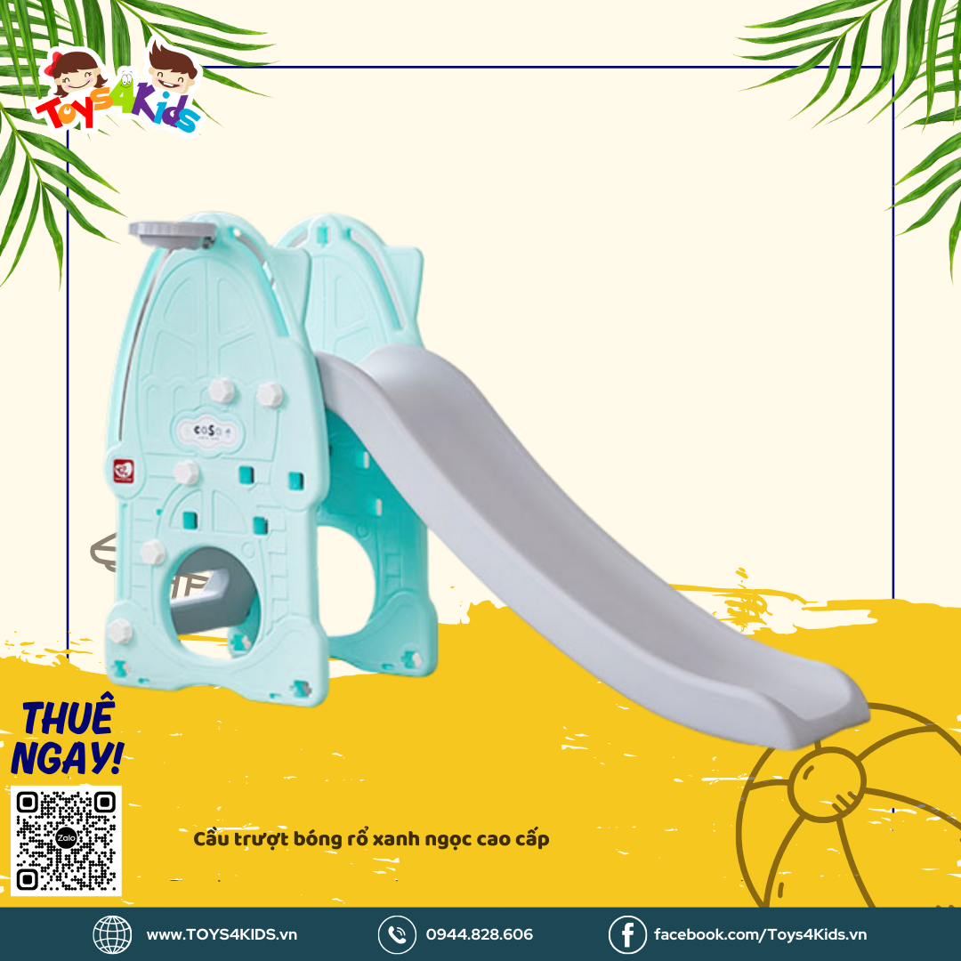 Cầu trượt kết hợp bóng rổ xanh ngọc YaYa cao cấp