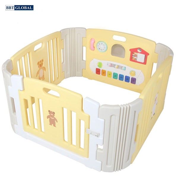 Quây 4 cạnh có cửa và đồ chơi màu vàng trắng